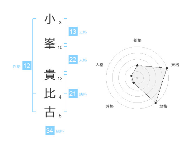 小峯 貴比古さんの天格は13画の5点!