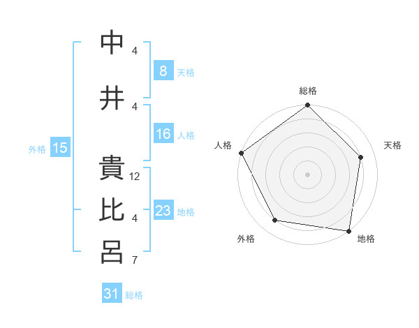 中井 貴比呂さんを姓名の画数から五運を鑑定
