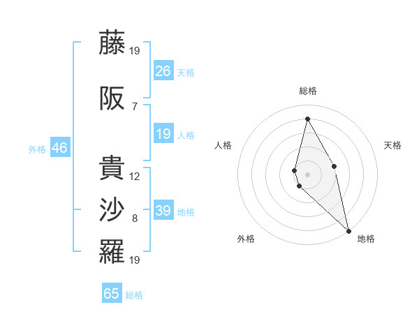 藤阪 貴沙羅さんを姓名の画数から五運を鑑定