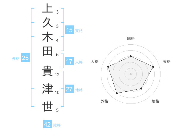 上久木田 貴津世さんの天格は15画の4点!