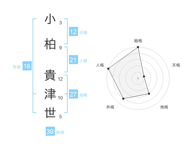 小柏 貴津世さんの総格は39画の5点!