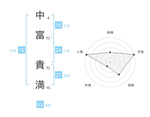 中富 貴満さんの天格は16画の5点!