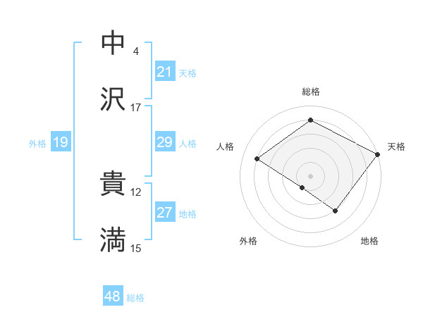 中沢 貴満さんの天格は21画の5点!
