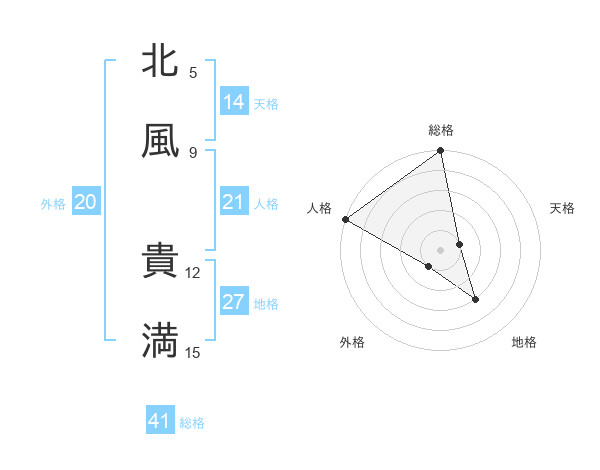 北風 貴満さんの総格は41画の5点!