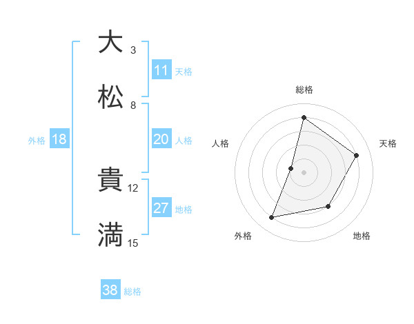 大松 貴満さんの総格は38画の4点!