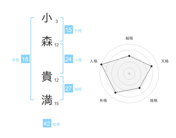 小森 貴満さんの天格は15画の4点!