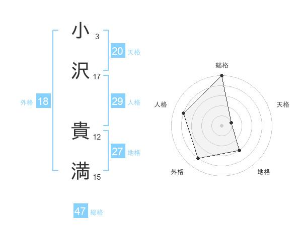 小沢 貴満さんを姓名の画数から五運を鑑定