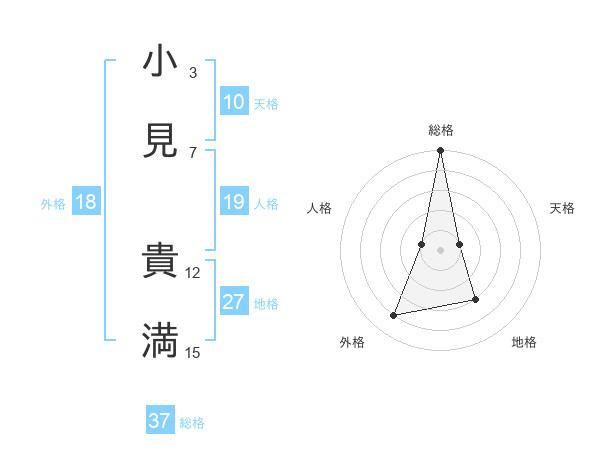 小見 貴満さんの総格は37画の5点!