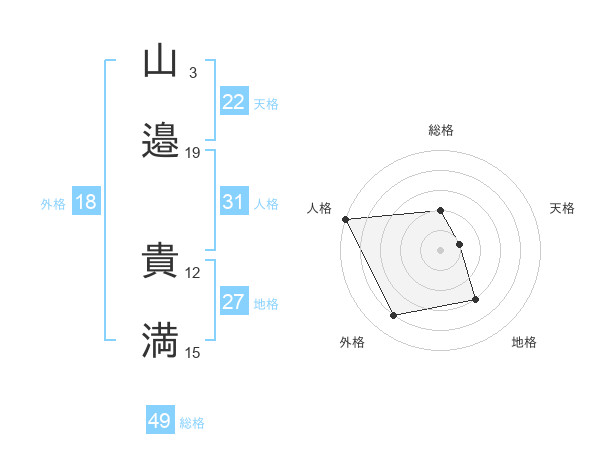 山邉 貴満さんを姓名の画数から五運を鑑定