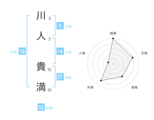 川人 貴満さんの総格は32画の5点!
