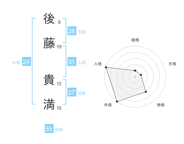 後藤 貴満さんの総格は55画の1点!
