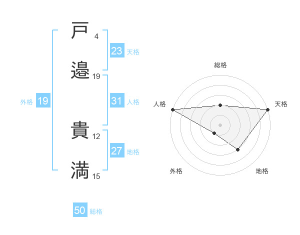 戸邉 貴満さんの総格は50画の2点!