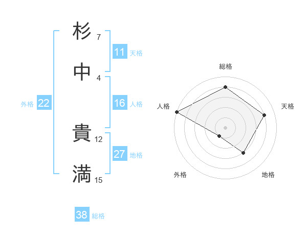 杉中 貴満さんを姓名の画数から五運を鑑定