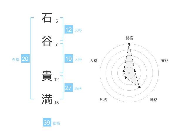石谷 貴満さんの総格は39画の5点!