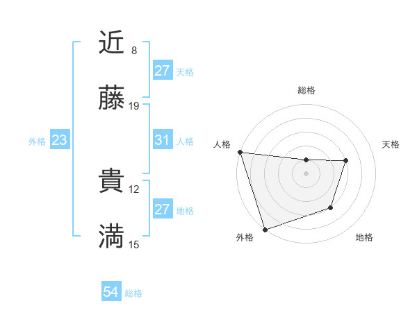 近藤 貴満さんを姓名の画数から五運を鑑定