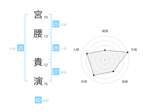 宮腰 貴演さんを姓名の画数から五運を鑑定