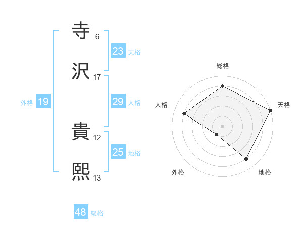 寺沢 貴熙さんを姓名の画数から五運を鑑定