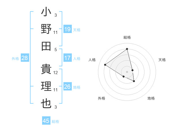 小野田 貴理也さんを姓名の画数から五運を鑑定