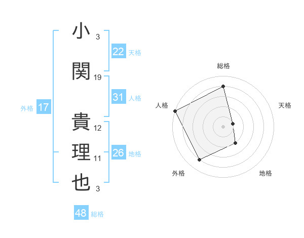 小関 貴理也さんの総格は48画の4点