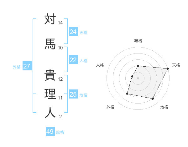 対馬 貴理人さんの天格は24画の5点!