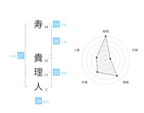 寿 貴理人さんの総格は39画の5点!