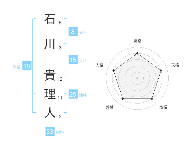 石川 貴理人さんを姓名の画数から五運を鑑定