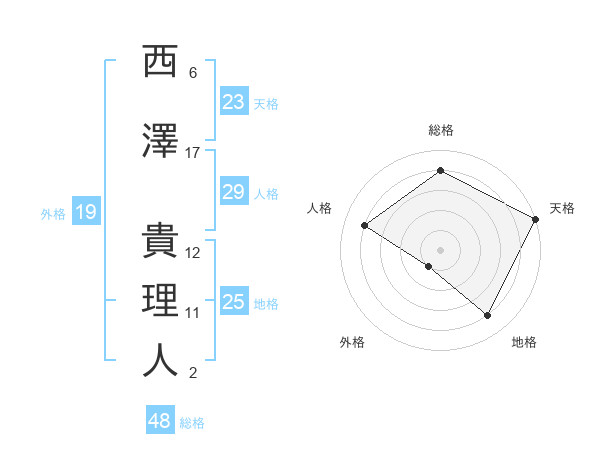 西澤 貴理人さんを姓名の画数から五運を鑑定