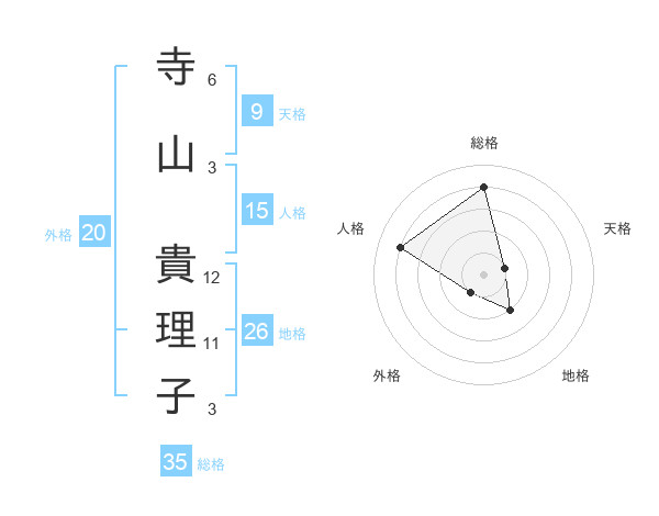 寺山 貴理子さんを姓名の画数から五運を鑑定