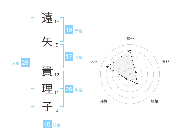 遠矢 貴理子さんの天格は19画の1点!