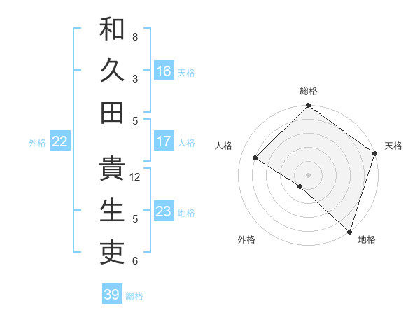 和久田 貴生吏さんを姓名の画数から五運を鑑定