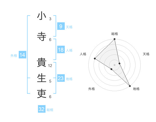 小寺 貴生吏さんを姓名の画数から五運を鑑定