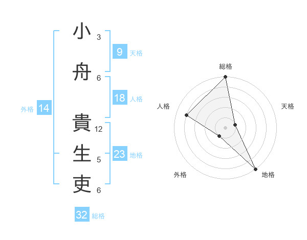 小舟 貴生吏さんの総格は32画の5点!