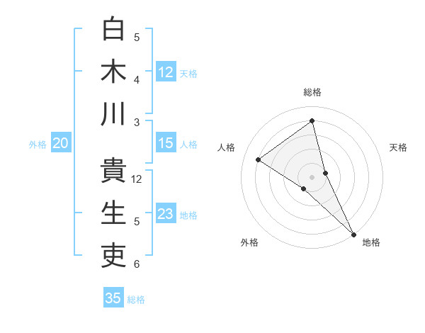 白木川 貴生吏さんを姓名の画数から五運を鑑定