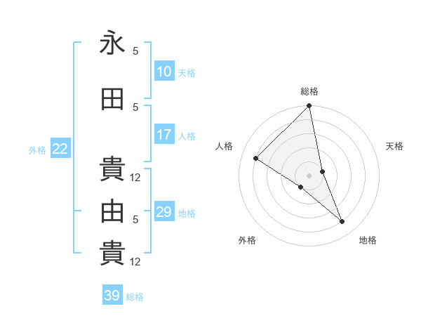 永田 貴由貴さんを姓名の画数から五運を鑑定