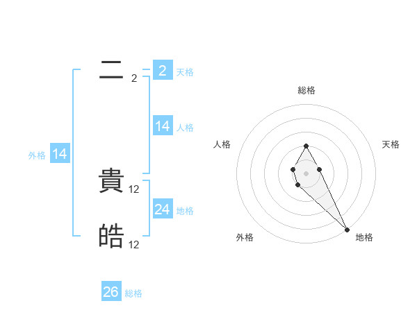 二 貴皓さんの総格は26画の2点!
