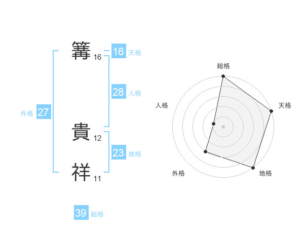 篝 貴祥さんの天格は16画の5点!