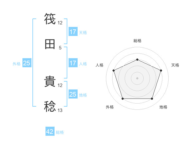 筏田 貴稔さんの天格は17画の4点!