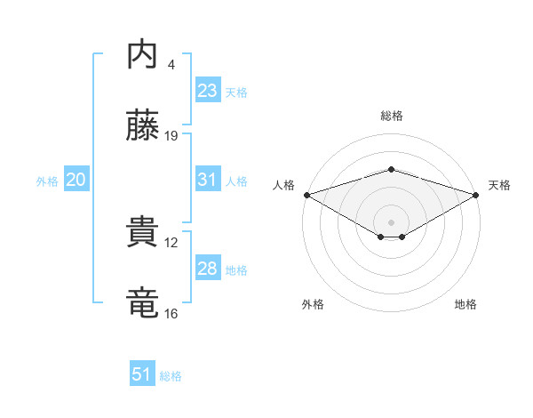 内藤 貴竜さんを姓名の画数から五運を鑑定