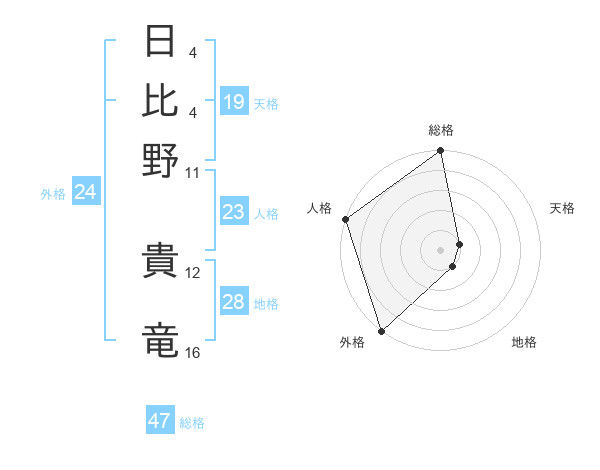 日比野 貴竜さんを姓名の画数から五運を鑑定