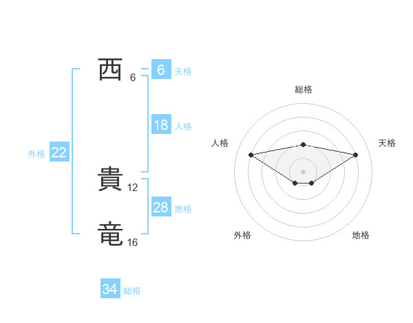 西 貴竜さんの総格は34画の2点!