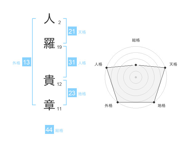 人羅 貴章さんを姓名の画数から五運を鑑定