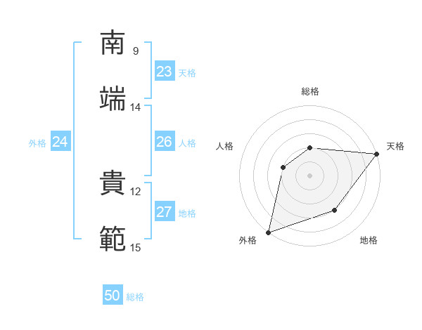 南端 貴範さんの総格は50画の2点!