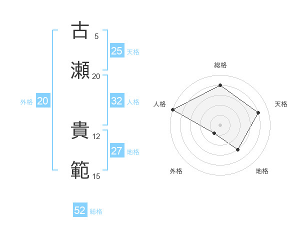 古瀬 貴範さんの総格は52画の4点!
