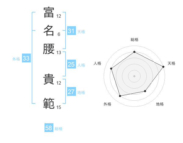 富名腰 貴範さんの総格は58画の4点!