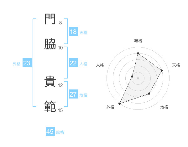 門脇 貴範さんを姓名の画数から五運を鑑定