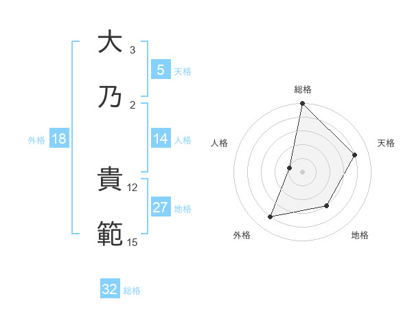 大乃 貴範さんの総格は32画の5点