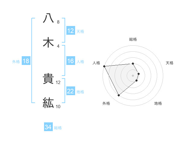 八木 貴紘さんの天格は12画の1点!