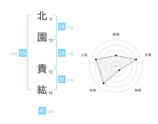 北園 貴紘さんを姓名の画数から五運を鑑定