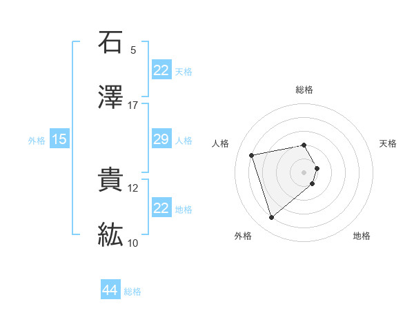 石澤 貴紘さんを姓名の画数から五運を鑑定