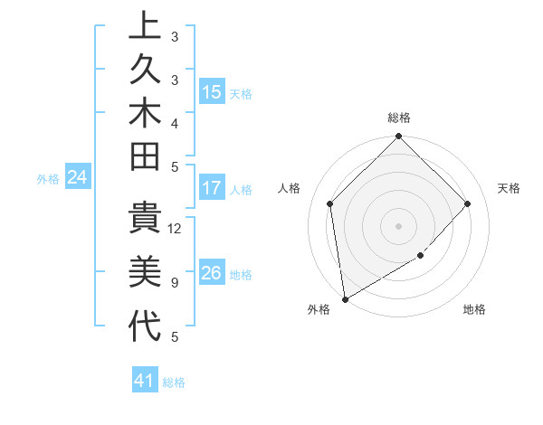 上久木田 貴美代さんを姓名の画数から五運を鑑定